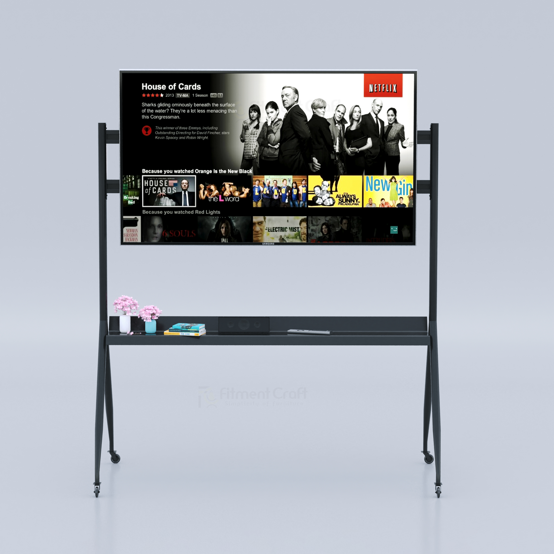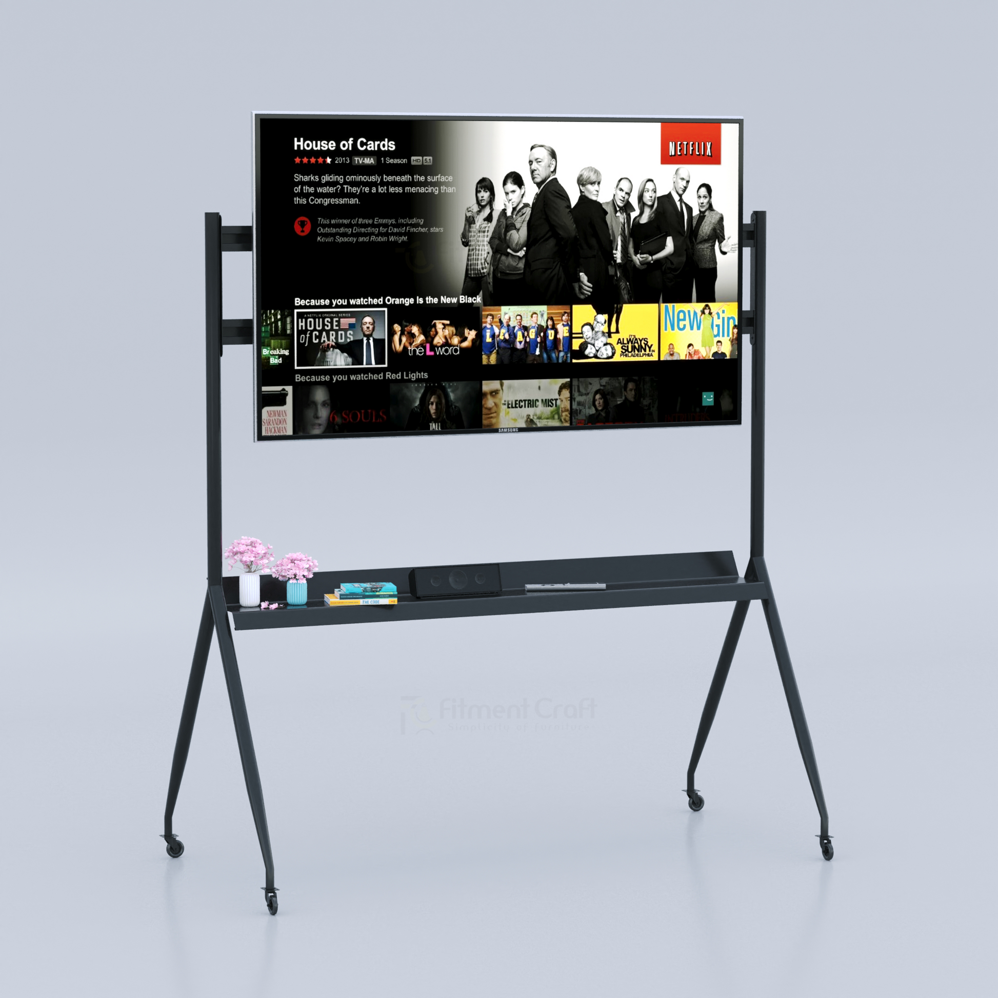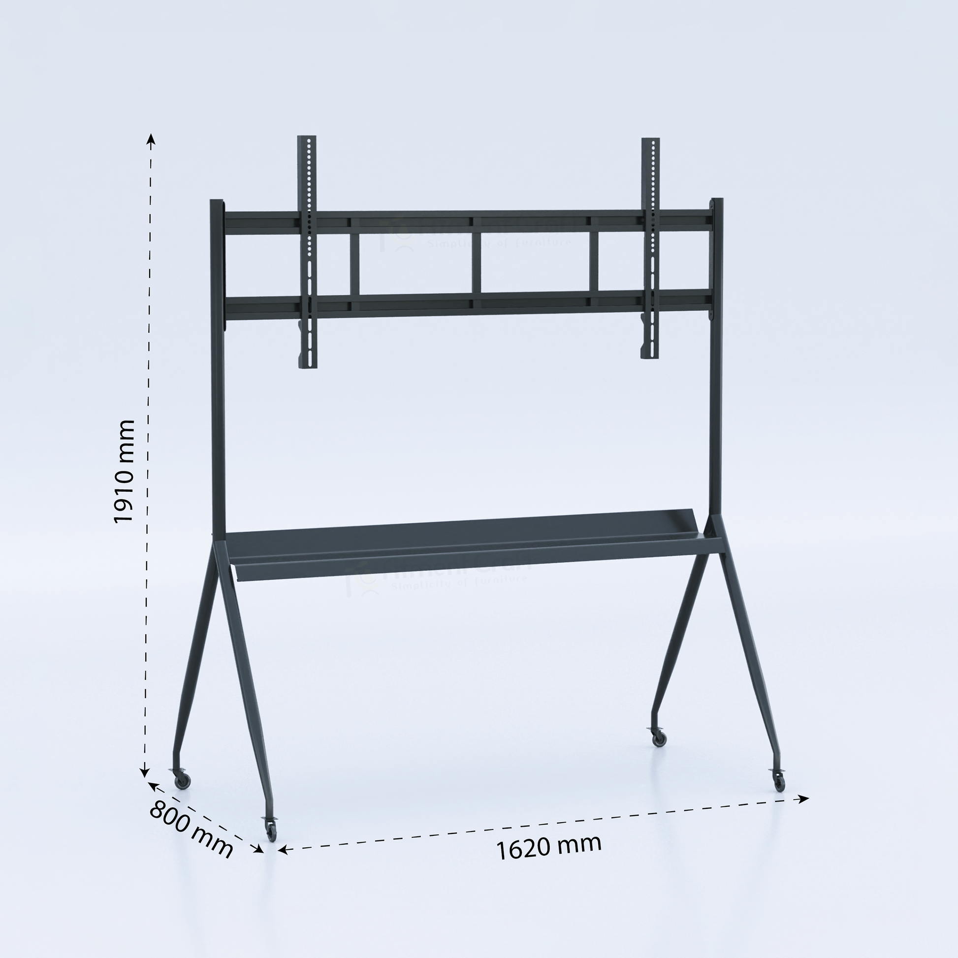Because it offers durability, mobility, and style – all in one. Whether at home, in the office, or in a professional setup, this stand ensures your screen setup is secure, organized, and visually appealing.