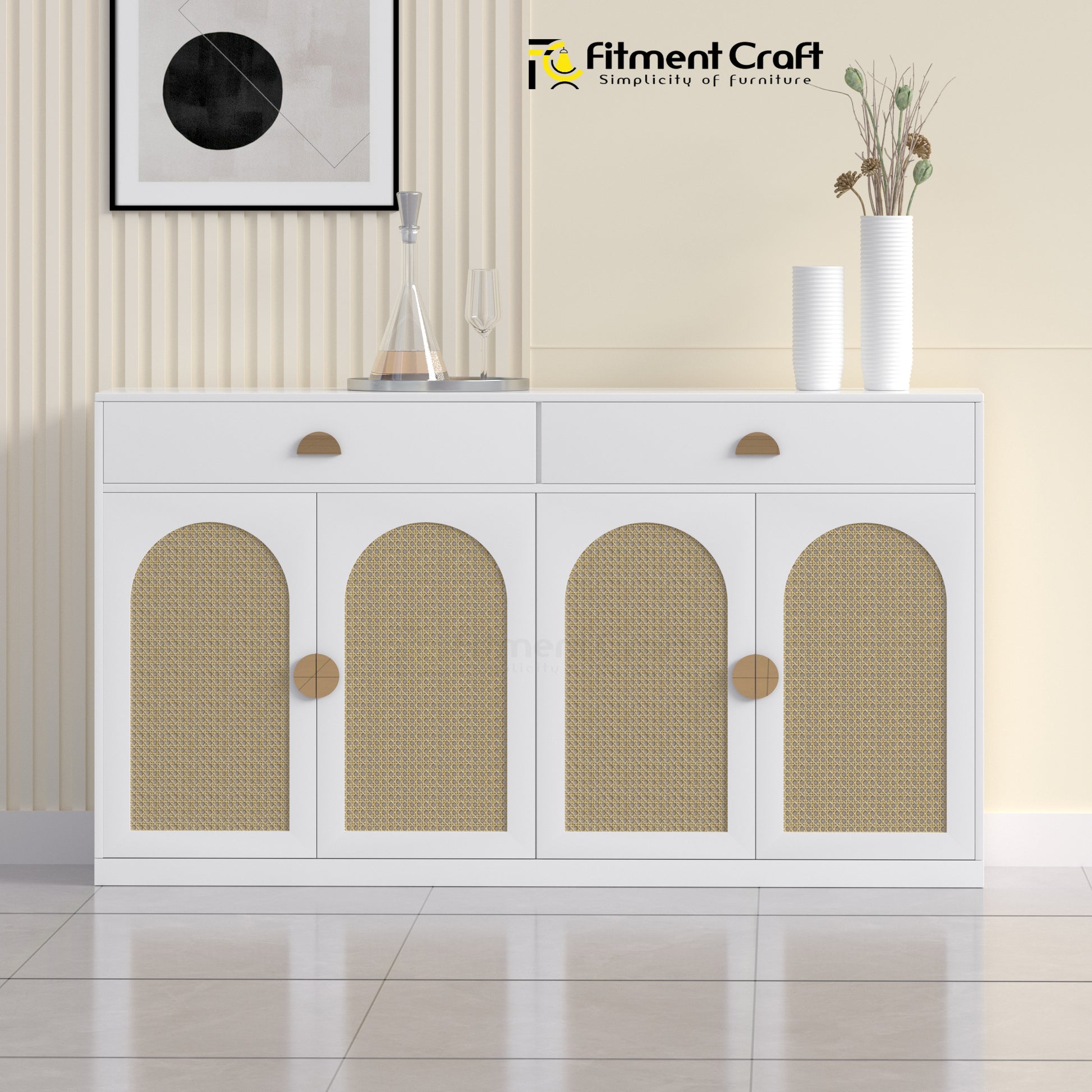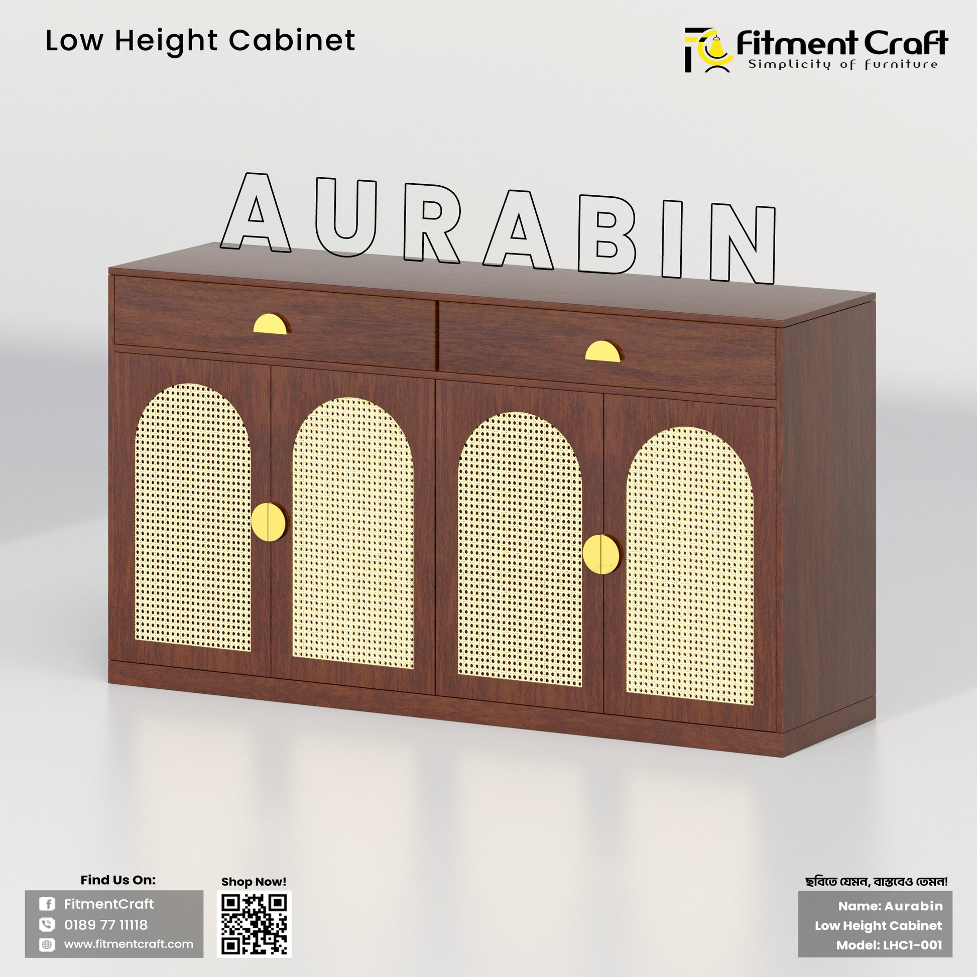 Stylish, functional, and thoughtfully crafted — the Aurabin Low Height Cabinet is a perfect blend of modern aesthetics and utility. Designed to fit seamlessly into your home, it offers ample storage while adding a touch of elegance with its woven rattan accents and smooth lacquer finish.
