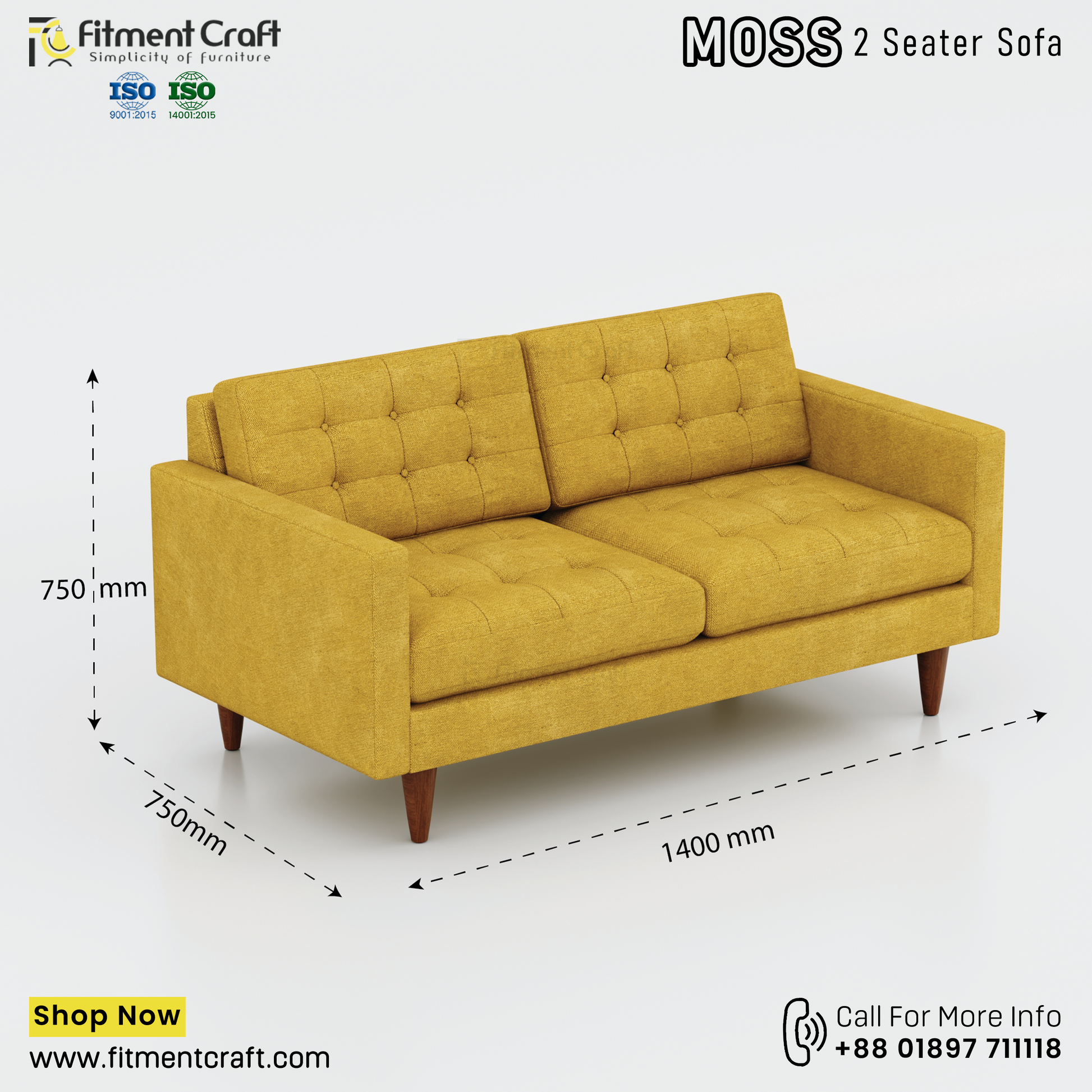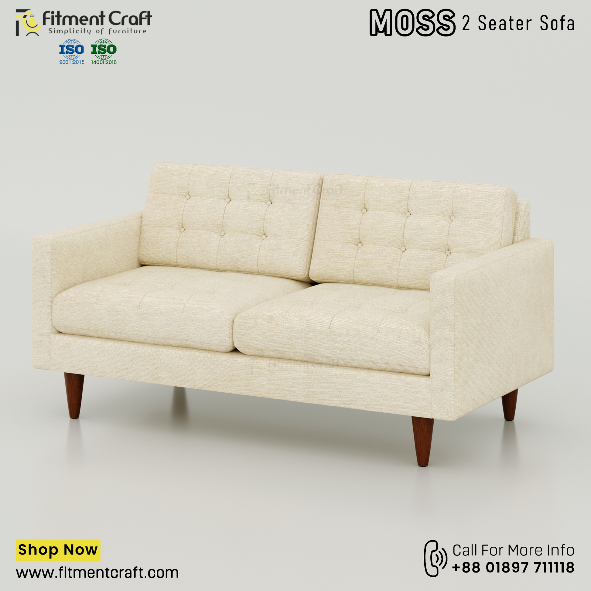 The MOSS 2-Seater Sofa is a modern and stylish solution for those who value simplicity, comfort, and space efficiency. Its elegant button-tufted back and seat offer built-in support, removing the need for extra cushions—perfect for a clean, minimal look.