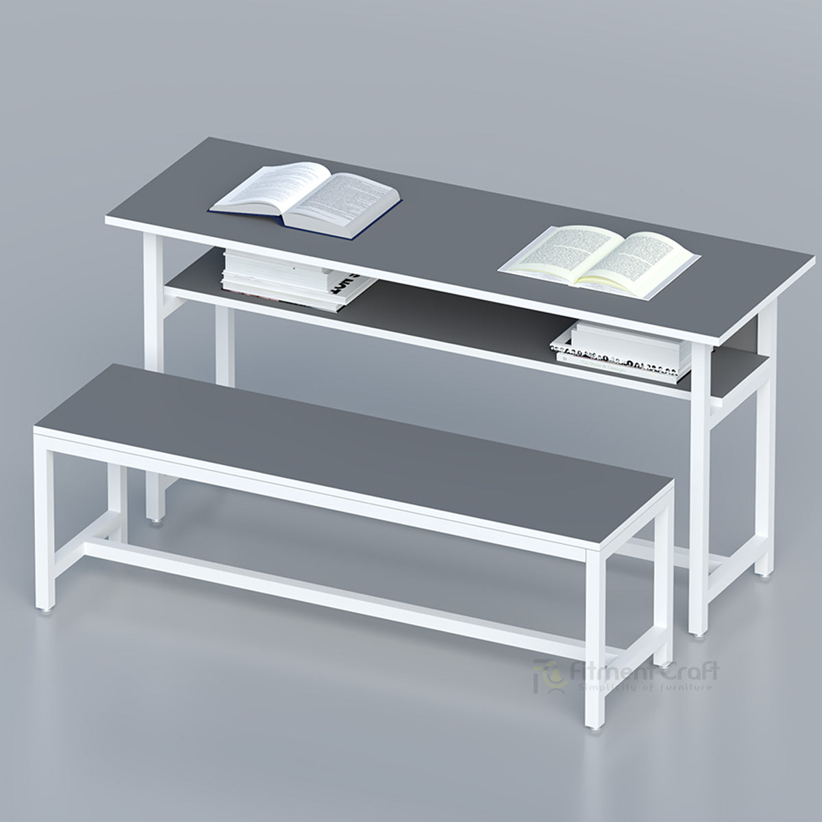 This is a set of two durable school benches, one high and one low, perfect for classrooms.