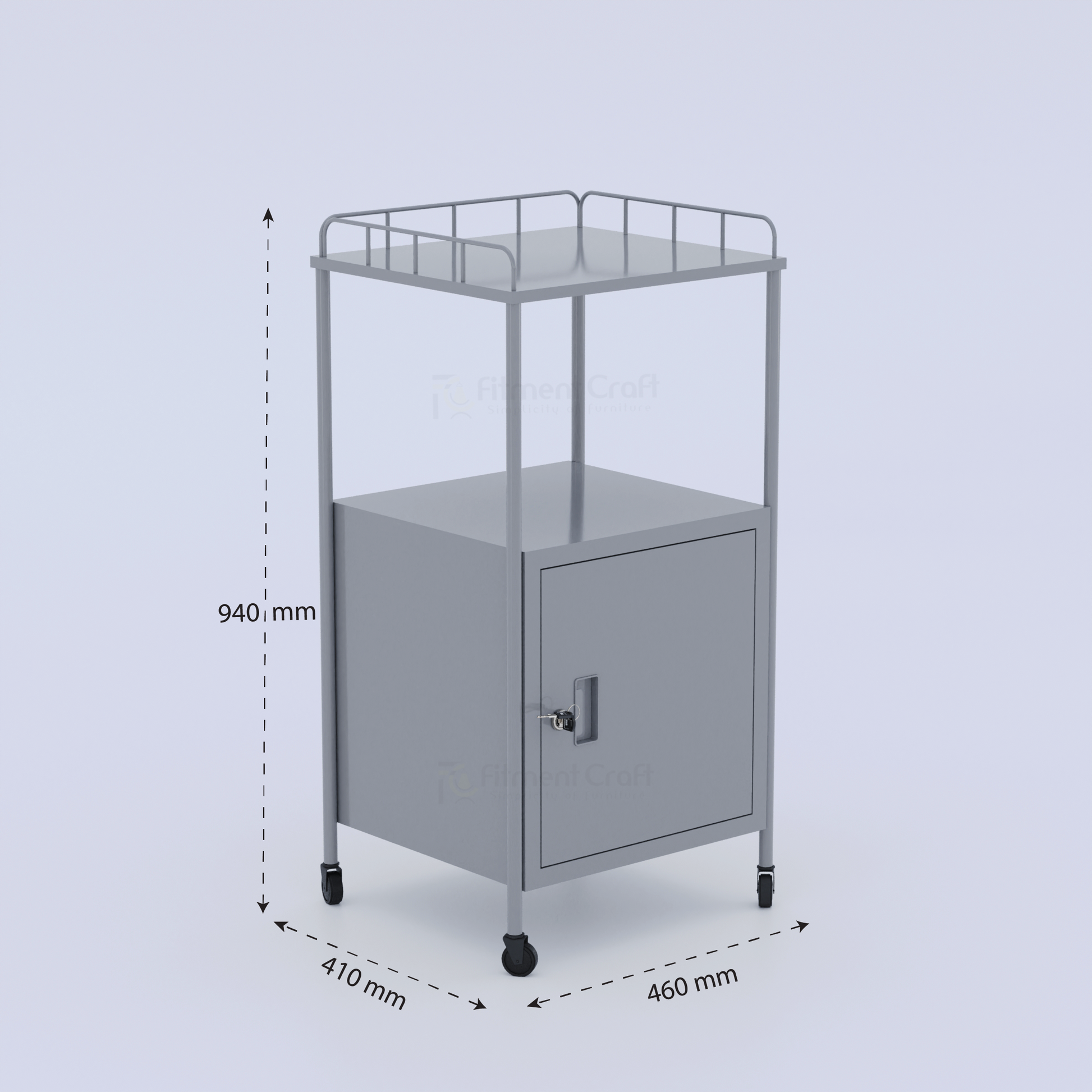 - Top Guard Rail: Provides an enclosed top surface to keep medicines and essentials secure.
